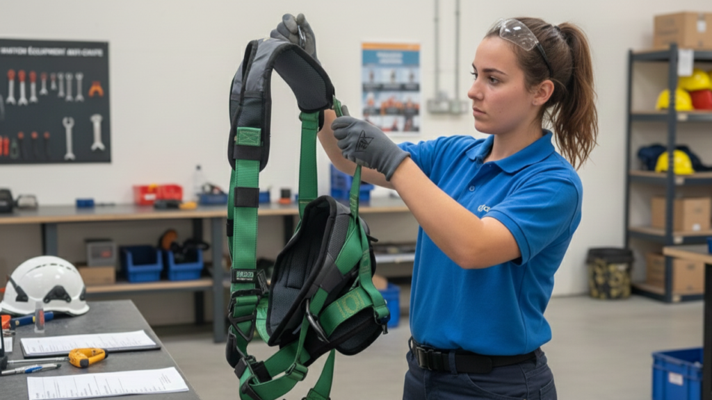 Une personne qualifiée possédant les compétences nécessaires à la vérification des EPI antichute.